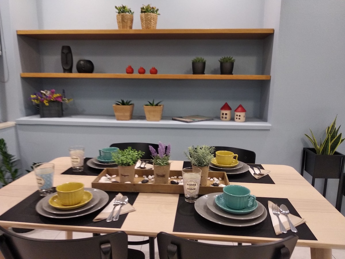 Apartamento azul claro en el corazón de la ciudad de Heraclión. Adecuado para todos aquellos que quieran, durante su estancia, fácil acceso al centro de la ciudad, ya sean viajeros, familias numerosas o grupos de amigos. Cuando se ponga el sol, prepárate para disfrutar de unas vistas nocturnas únicas a través de las amplias ventanas de pared a pared, ¡sintiendo el ritmo de la ciudad!