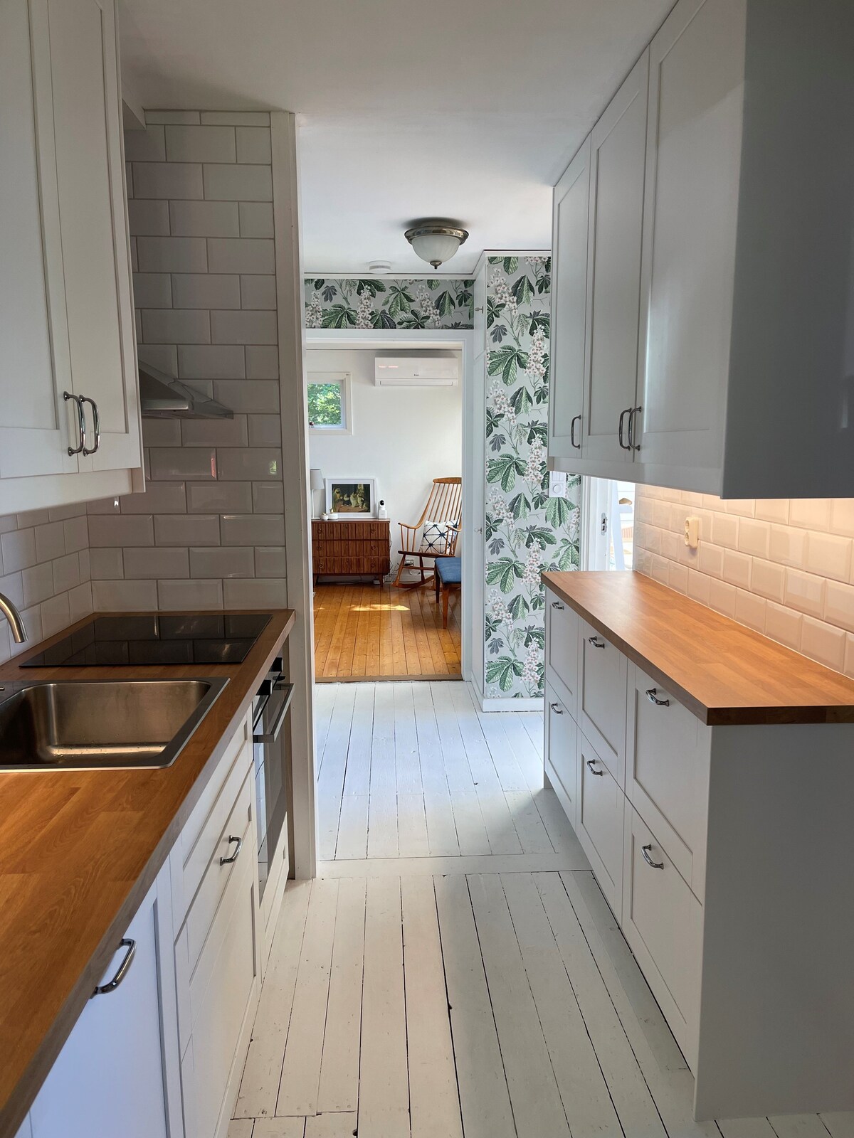 Stenhaga, casa con parcela de lago, a unos 80 metros de nuestro propio lago. Amplia terraza de madera con mesa y asientos. Pequeña playa de arena. Muelle flotante con escalera de natación. La casa está cerca de Smedstugan, nuestra segunda casa que alquilamos aquí en Airbnb. Pesca incluida. Salmón planeado. Un pescado está incluido en el alquiler, luego 100 SEK/salmón. Se incluye el bote de remos. La cocina tiene una sección plegable, que se puede tirar completamente a un lado, una gran abertura a la terraza. Nivel 1: cocina, sala de televisión, baño. Nivel 2 - Sala de estar con chimenea, balcón, 3 dormitorios. Wifi, Apple TV.
