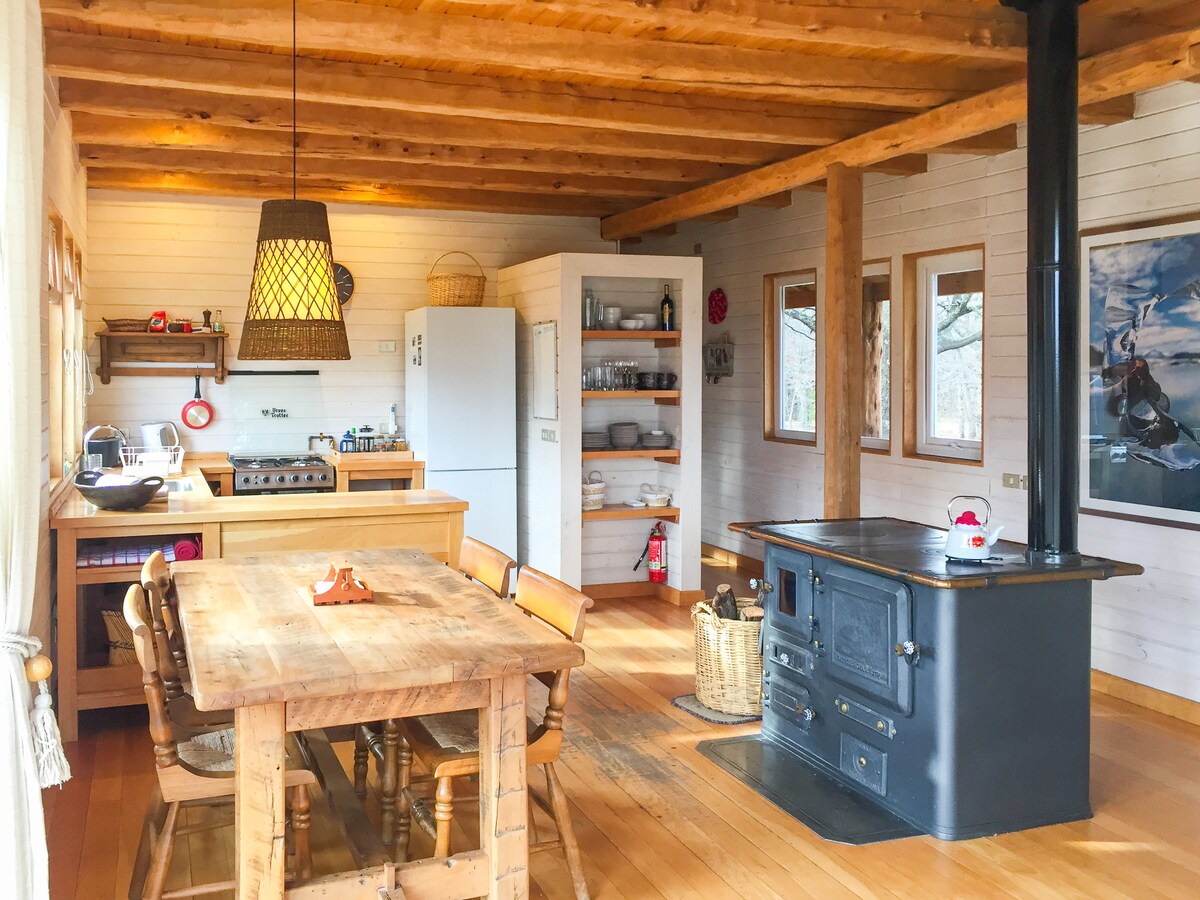 Funcionamos bajo el concepto de contact less y self chkin. La cabaña se entrega con ropa de cama, sabanas de baño, amenities, papel higiénico y leña. Hay vajilla y utensilios de cocina para 8 personas. Se cuenta con terraza, kayak para paseos en la bahía, parrillas para asado y un hot tub. La parrilla se debe pagar por cada uso. El Hot Tub se debe pagar por cada uso de 2 horas y no es de uso exclusivo ya que otros pasajeros pueden usarlo en el dia.