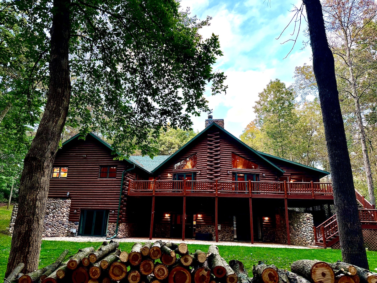 Welcome to The Hideaway, an 8-acre luxury log cabin, located near Whitewater Lake & Kettle Moraine State Park with year-around hiking & parks available. Outside Hideaway amenities include a hot tub, firepit with oversized Adirondack chairs, and new lighted pickleball & beach volleyball courts. Inside amenities include a 16’ shuffleboard table, foosball, air hockey, ping pong and in-home theater Enjoy all this plus the comfort of 6 bedrooms including a master suite equipped with a jacuzzi bath.