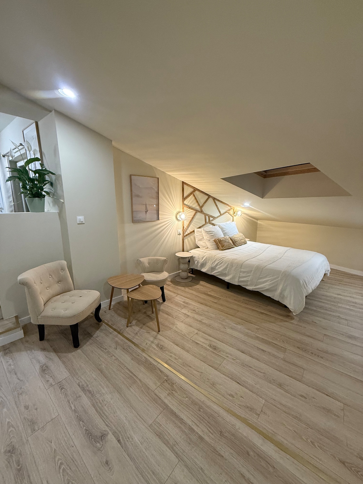 Au cœur du centre ville de Doué la Fontaine, venez profiter d'une escapade à deux dans un logement refait à neuf; avec son lit de 2m par 2m, sa salle de bain en béton ciré qui laisse le choix à la baignoire ou à la douche ronde et son ciel de pluie, sans oublier sa tentra chair… Votre pourrez profiter de l'extérieur; commun avec d'autres appartements; et d'un véritable spa privatif… Tout le confort nécessaire pour une parenthèse à deux; que ce soit pour découvrir l'Anjou ou profiter des lieux.