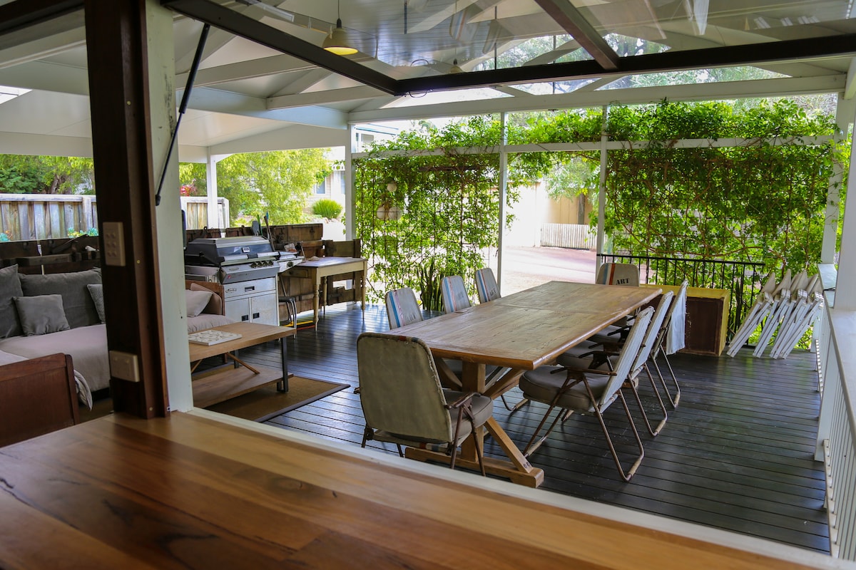 Un lugar familiar para escapar y conectar: una presa para nadar, cancha de tenis, aro de baloncesto y un huerto de ensalada de frutas con frutas de temporada, verduras, bayas y hierbas gratis para recoger. Es un lugar para que los niños o los bebés peludos deambulen libremente, disfrutando de la casita, el trampolín, la casa del árbol, montando en bicicleta, haciendo karting o jugando en el bosque. Verás canguros, emúes o conejitos mientras disfrutas de la serenidad, relajándote en la terraza con vistas a las vides. Reservamos con hasta 6 meses de antelación, envíanos un mensaje para otras fechas.
