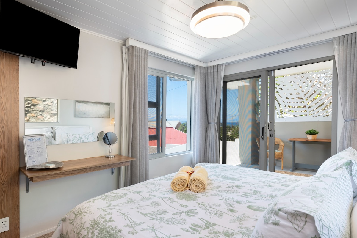 Sumérgete en las vistas panorámicas de las montañas Outeniqua desde este estudio lleno de luz y planta abierta. Rodeado de árboles autóctonos. El estudio de arriba cuenta con grandes ventanales, una cocina totalmente equipada, una cama tamaño queen y baño privado. La luz natural llena el espacio y crea un ambiente acogedor. En la planta baja, con entrada privada propia, hay un espacioso segundo dormitorio con una cama tamaño queen, baño privado y una pequeña mesa y sillas.