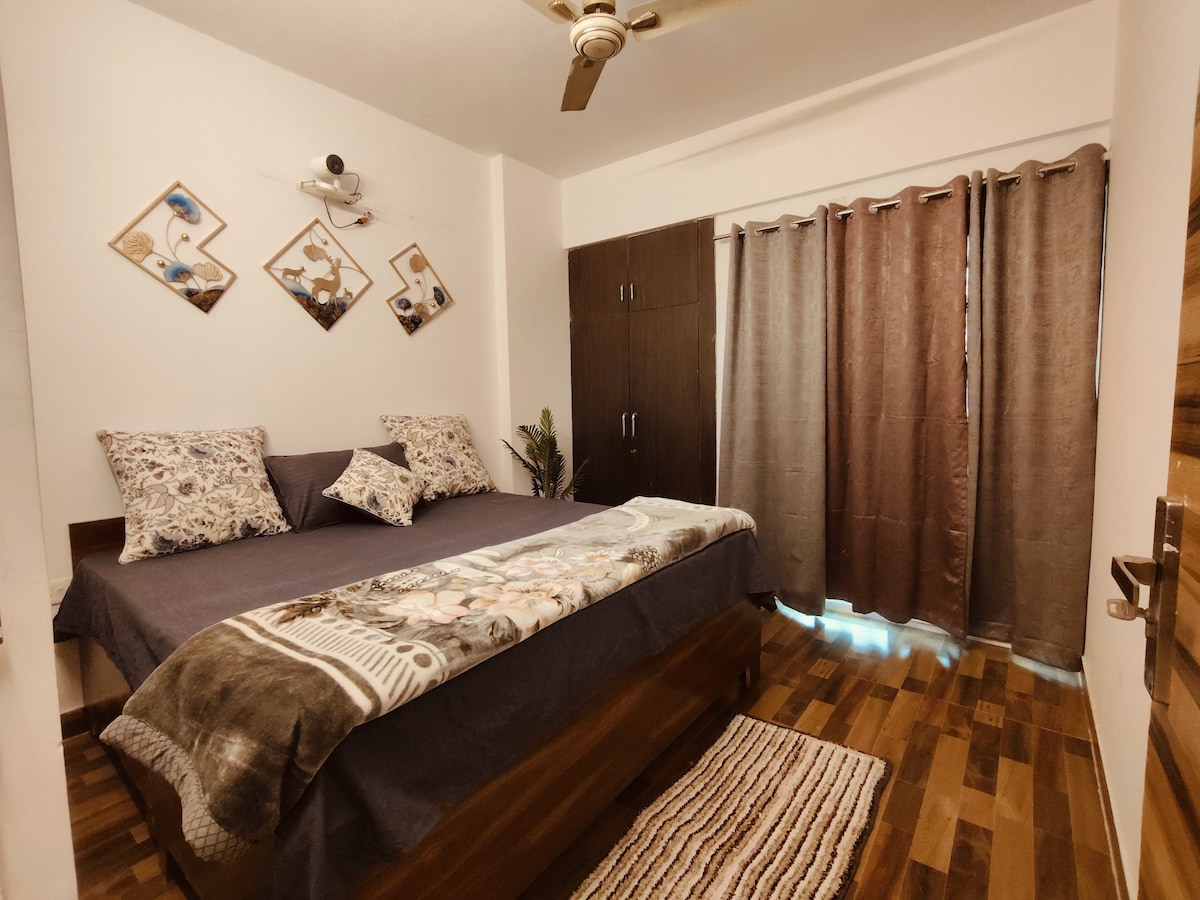 Elegante y acogedor 1-BHK con cama tamaño king, sala de estar luminosa, televisor inteligente y conexión Wi-Fi rápida. Disfruta de una zona de cocina totalmente equipada, un baño limpio y total privacidad. Ubicado en un edificio seguro cerca de Noida Sector 62/63, metro, cafés y mercados. Ideal para parejas, viajeros solitarios, huéspedes de negocios y familias pequeñas que buscan una estancia cómoda y tranquila. Para mantener un ambiente tranquilo para todos, no permitimos celebraciones, fiestas, cumpleaños ni reuniones en la propiedad.