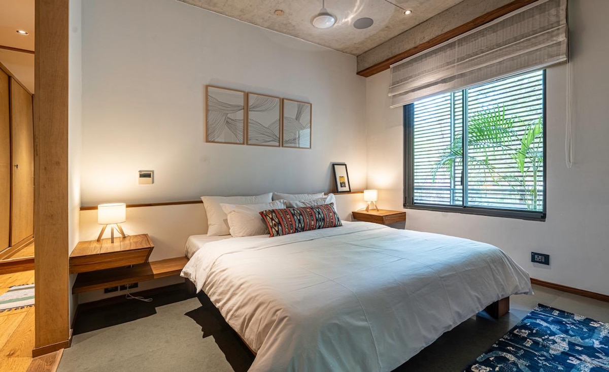 Atención: ¡En temporada alta, el lugar se reserva muy rápidamente! Disfruta de un lujo inigualable en esta exquisita planta de 3 dormitorios del sur de Delhi en una casa, en las exclusivas y cerradas Sainik Farms, ubicada cerca de centros comerciales y la estación de metro Saket. Suelos de mármol italiano a medida del Statuario, muebles hechos a mano y amplios dormitorios con balcones privados. Relájate en baños tipo spa con bañeras, control de clima basado en IA, una cocina modular totalmente equipada y un espacio al aire libre sereno.