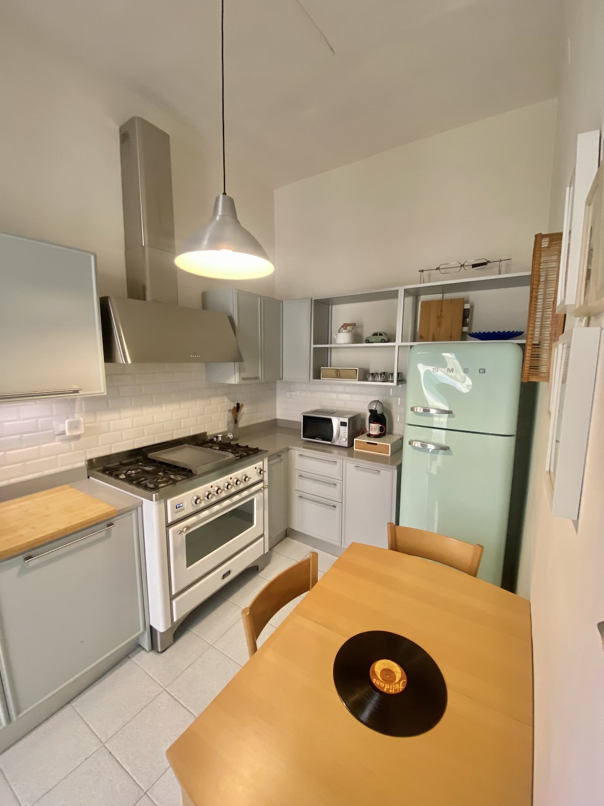 An old tower house in the heart of Pisa. A fully equipped stainless steel kitchen with espresso machine and kettle. The interiors blends wooden beams, steel and glass with a swinging hammock, designer lamps, a turntable and an extensive library of art and illustration books. The bedroom is accessed via an internal staircase, while the apartment is located in the attic (3rd floor) of a historic building: the staircase is a bit steep, so unfortunately it may not be comfortable for everyone.