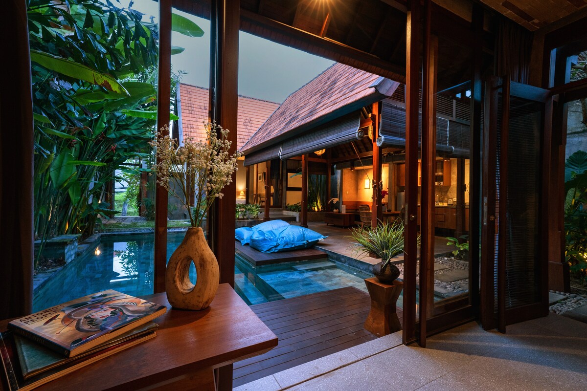 Una villa privada de un dormitorio con piscina y cocina, realmente ideal para tu luna de miel. A solo 5 minutos a pie de la playa y también podemos organizar un conductor para que tu luna de miel sea más fácil de disfrutar en Bali y también tenemos servicio de entrega para tu desayuno, almuerzo y cena. Es genial tener un desayuno flotante en la villa. Solo avísame en qué podemos ayudarte... y nos vemos pronto.