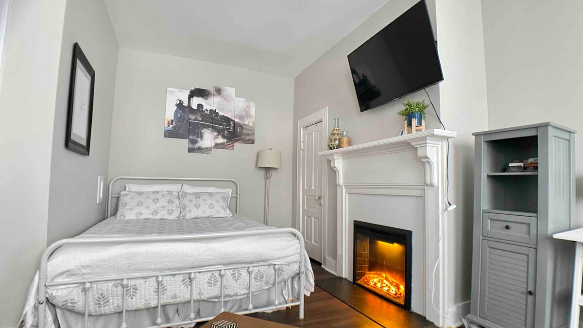 Disfruta de los antiguos cuartos de chófer ubicados en los terrenos de nuestra propiedad del Registro Nacional de Lugares Históricos con acceso a los tranquilos jardines de la casa señorial. La cocina está completa y la cómoda cama de tamaño completo debe proporcionar una buena noche de descanso. Las actividades del centro están a pocos pasos. Hay varias zonas de estar para disfrutar de los extensos jardines en los terrenos de un acre que se comparten con la propiedad principal. No podemos alojar a huéspedes menores de 16 años.