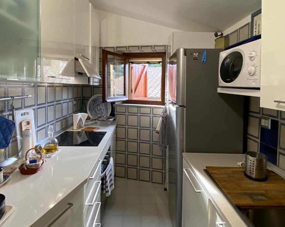 La casa cuenta con una impresionante vista al mar, los dos puertos, la montaña y el Fortess español. En la planta baja: sala de estar con televisión y aire acondicionado, cocina bien equipada con una pequeña terraza, dormitorio principal con aire acondicionado y baño, segunda habitación con cama matrimonial y baño. Por las escaleras vintage se puede llegar al altillo con un pequeño baño y dos cómodas camas tamaño queen. En la gran terraza puedes disfrutar de tus comidas. Acceso a la piscina (a partir del 15 de junio) y espacio de estacionamiento.