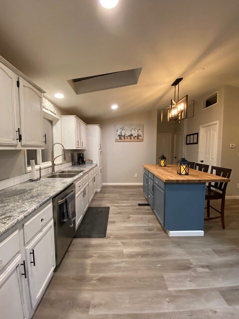 Relájate en esta cabaña boho a 5 minutos del lago, repleta de comodidades y rodeada de terrenos arbolados por todos lados. Dos dormitorios king de lujo, cada uno con un espacio de trabajo tranquilo y colchón king de 14 pulgadas. Una tercera habitación con juguetes, libros y 6 increíbles literas integradas con Beddys premium para un sueño acogedor. Amplia sala de estar, con chimenea acogedora y comedor para más de 10 personas. Amplia cocina de cocinero, con isla y despensa que incluye servicios de hogar. Además de la sala de juegos del garaje: ¡ping pong, futbolín y baloncesto de arcade! ¡Descansa y recarga!