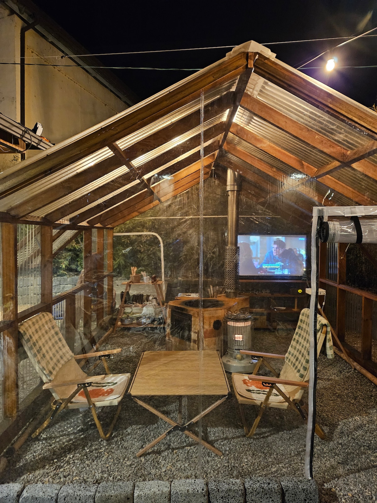 Es una casa de campo con varios árboles frutales ubicada a una altura de 420 m bajo el Samdobong de la Montaña Democrática, lejos de las bulliciosas atracciones turísticas del Parque Nacional Deokyusan y Muju Resort. Se tarda unos 10 minutos en llegar a Taekwondo Won y Bandiland, y 25 minutos en llegar a Deokyusan Muju Resort. En el interior del pueblo, también puedes disfrutar de la belleza natural del valle. Uncle House es el edificio de estructura de madera de estilo americano más aislado diseñado y construido por la prestigiosa empresa de construcción de madera de Seúl. El techo es alto, el verano es fresco y el invierno es una casa cálida, una vista alta y amplia, y un lugar caliente para disfrutar de la chimenea con vistas a las estrellas. El primer piso es el espacio de la pareja de anfitriones, y los 56 m2 (incluida la terraza) en el segundo piso es la casa de huéspedes. Tiene una entrada independiente y no es una casa incómoda porque hay un anfitrión, pero es más apreciada porque puedes obtener ayuda y servicio inmediatos. Uncle Style BBQ es un gran lugar para una familia estadounidense, y las habilidades gastronómicas acompañadas por la casa del tío son muy talentosas. El solárium con una chimenea privada al aire libre es por mucho el mejor. ♡