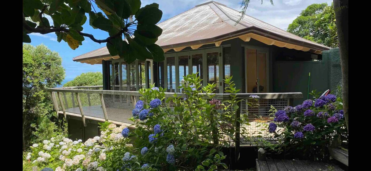 Acogedora cabaña situada entre el bosque costero, enclavada entre los árboles con vistas al hermoso jardín y la playa de Wainui. Despiértate con el sol naciente y el canto de los pájaros. Es UNA HABITACIÓN GRANDE con baño separado y una pequeña cocina americana y una zona de terraza envolvente. La cama tamaño king se puede utilizar como 2 camas individuales. Sofá cama individual tamaño king extraíble más cama plegable para una cuarta persona. Por favor, avísame en el momento de la reserva sobre la configuración de la cama. Nota: hay escalones hasta el alojamiento, por lo que las maletas pesadas no son ideales.