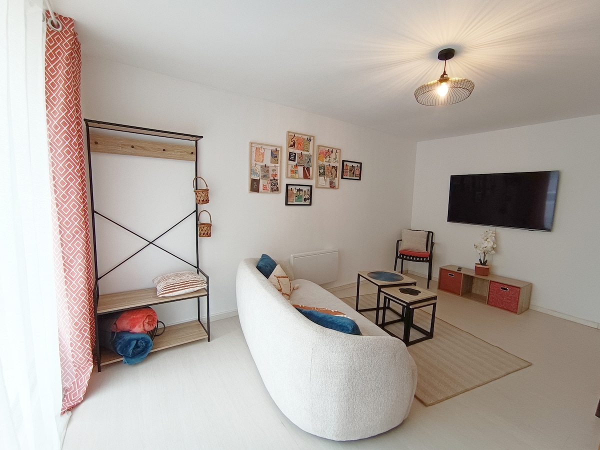 Apartamento renovado situado en pleno centro histórico de Sens, a dos pasos de la catedral, del mercado y de los comercios. Tranquilo y luminoso, ofrece un espacio acogedor con dormitorio separado por cristalera, sala de estar cómoda, zona de escritorio y cocina equipada. Baño moderno, lavadora secadora (parte común), ropa de cama incluida. Llegada autónoma, Wi-Fi. Estacionamiento fácil en las cercanías. Ideal para una estadía de negocios o un fin de semana en pareja.