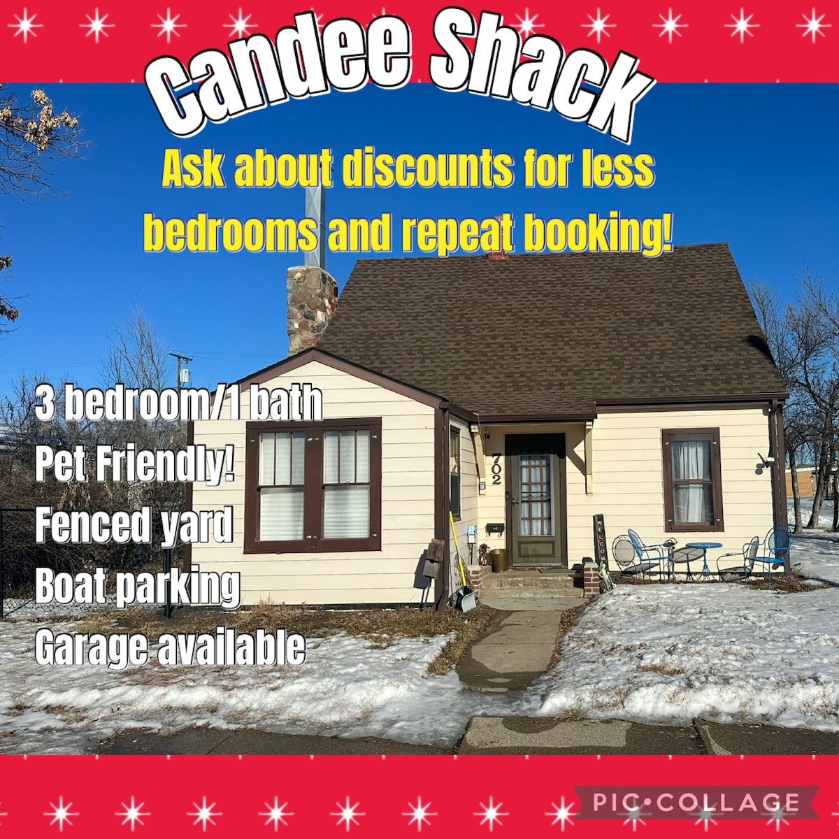 Alojamiento asequible, excelente ubicación. ¡Te damos la bienvenida a la “Candee Shack” de Glasgow, donde se admiten mascotas! Cerca del centro y a 20 minutos de Fort Peck, esta es nuestra casa de vacaciones que compartimos cuando no estamos en la ciudad. Este alojamiento es más antiguo y los pisos son chirriantes, pero es cómodo, acogedor y tiene lo básico. NOTA: Este anuncio es para toda la casa, pero si necesitas menos habitaciones, alquila solo la planta baja o solo dos dormitorios por un costo reducido, ¡busca el otro anuncio! El garaje con calefacción se puede agregar por una tarifa nocturna.