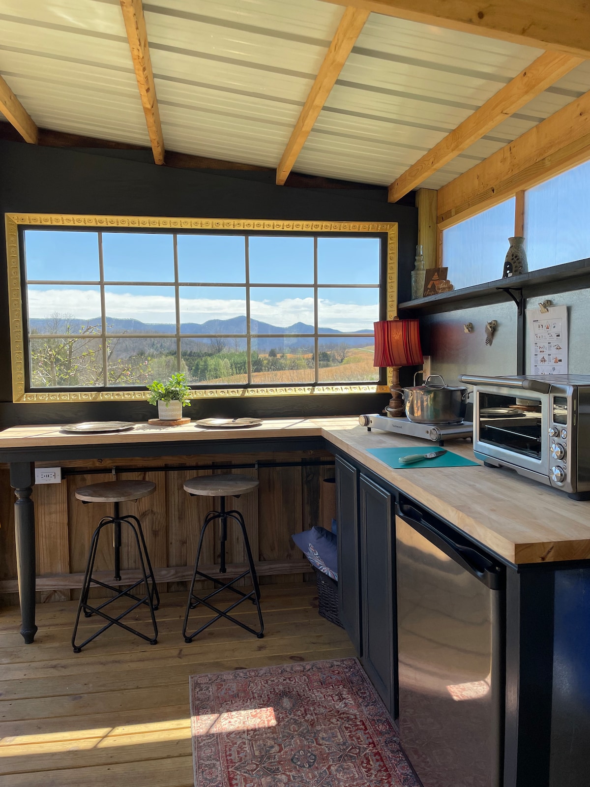 La cabaña en Stillhouse Farm ofrece una escapada aislada con vistas al atardecer de Blue Ridge Mountain a menos de 5 millas de W&L, VMI y Lexington. Los amplios porches y el amplio vidrio cuentan con la belleza de Rockbridge Co. ¡No hay vecinos a la vista ni sonido! Somos una granja en funcionamiento y principalmente criamos ovejas. Las estrellas brillan en los cielos oscuros certificados. Consulta nuestra guía para excursiones locales y nuestro otro anuncio *Stillhouse Farm Yurt*