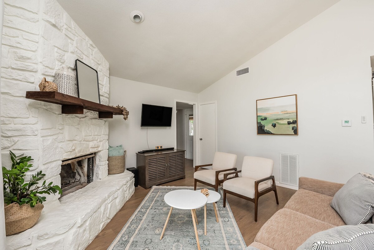 Esta encantadora casita de campo es de nueva construcción, diseñada en el estilo «industrial farmhouse chic». Es el lugar perfecto para una escapada romántica o una relajante aventura en el campo. ¡Disfruta de las vistas arboladas desde el porche trasero, camina hasta el lago o disfruta de un día en el centro de Granbury! Si tienes suerte, puede que incluso veas al correcaminos del barrio. ¡Le encanta usar nuestro porche trasero como escondite!Nos encantaría tenerte, así que ven y quédate un tiempo.