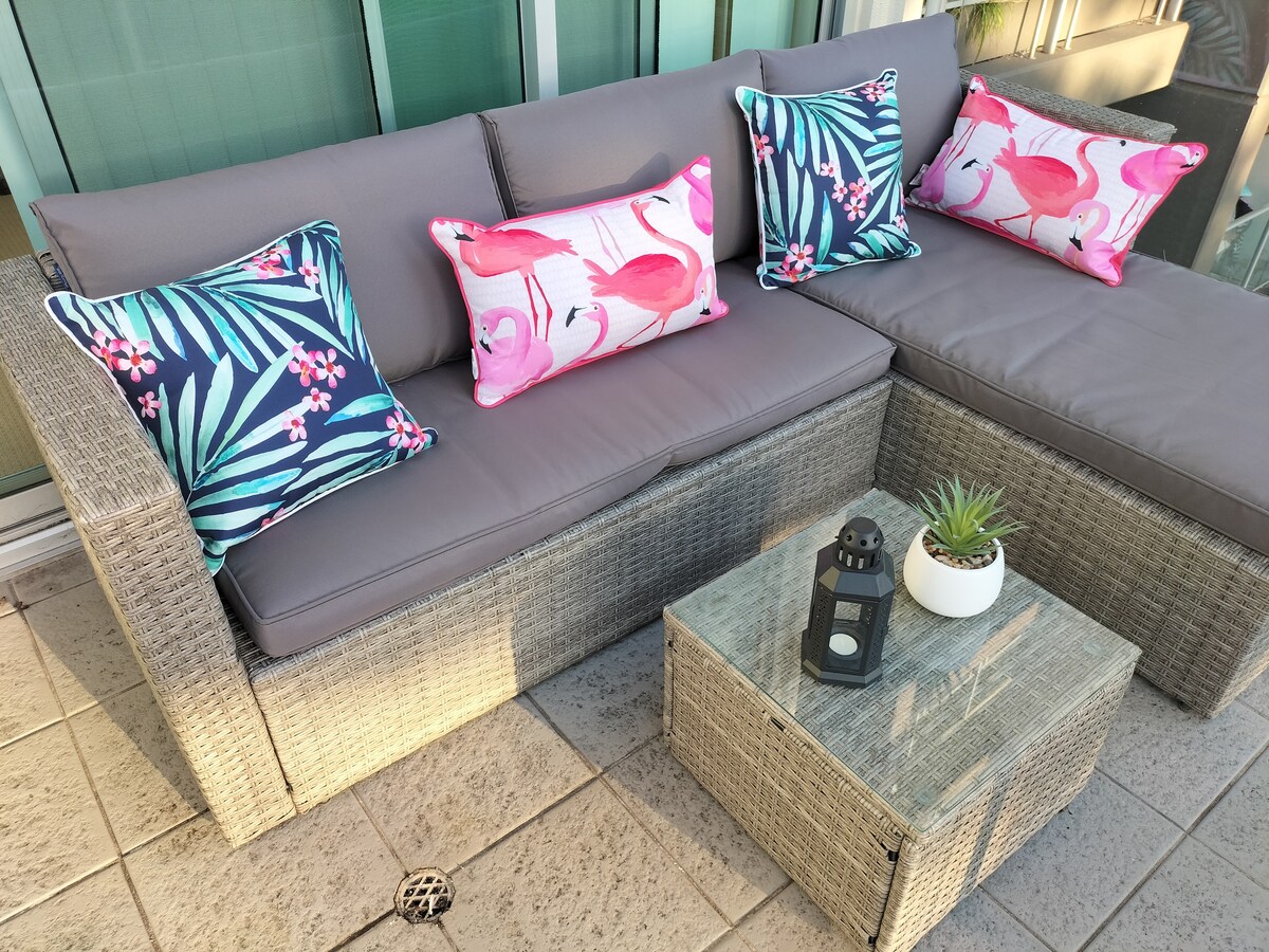 Bienvenido a My Place – Bohem Luxury Ubicado en el noveno piso con 180° de impresionantes vistas, bellamente decorado, e incluye estacionamiento seguro gratuito en el lugar, WiFi y acceso a la piscina, gimnasio e instalaciones de barbacoa. ¡Una selección de tesoros locales, todo a pocos pasos! Desde Chinatown, el Mercado Central, restaurantes, Her Majesty 's Theatre, Victoria Square, Veale Gardens, o aprovechar los servicios gratuitos de autobús y tranvía para explorar el CBD. ¡Ubicación privilegiada de CBD por negocios o placer!