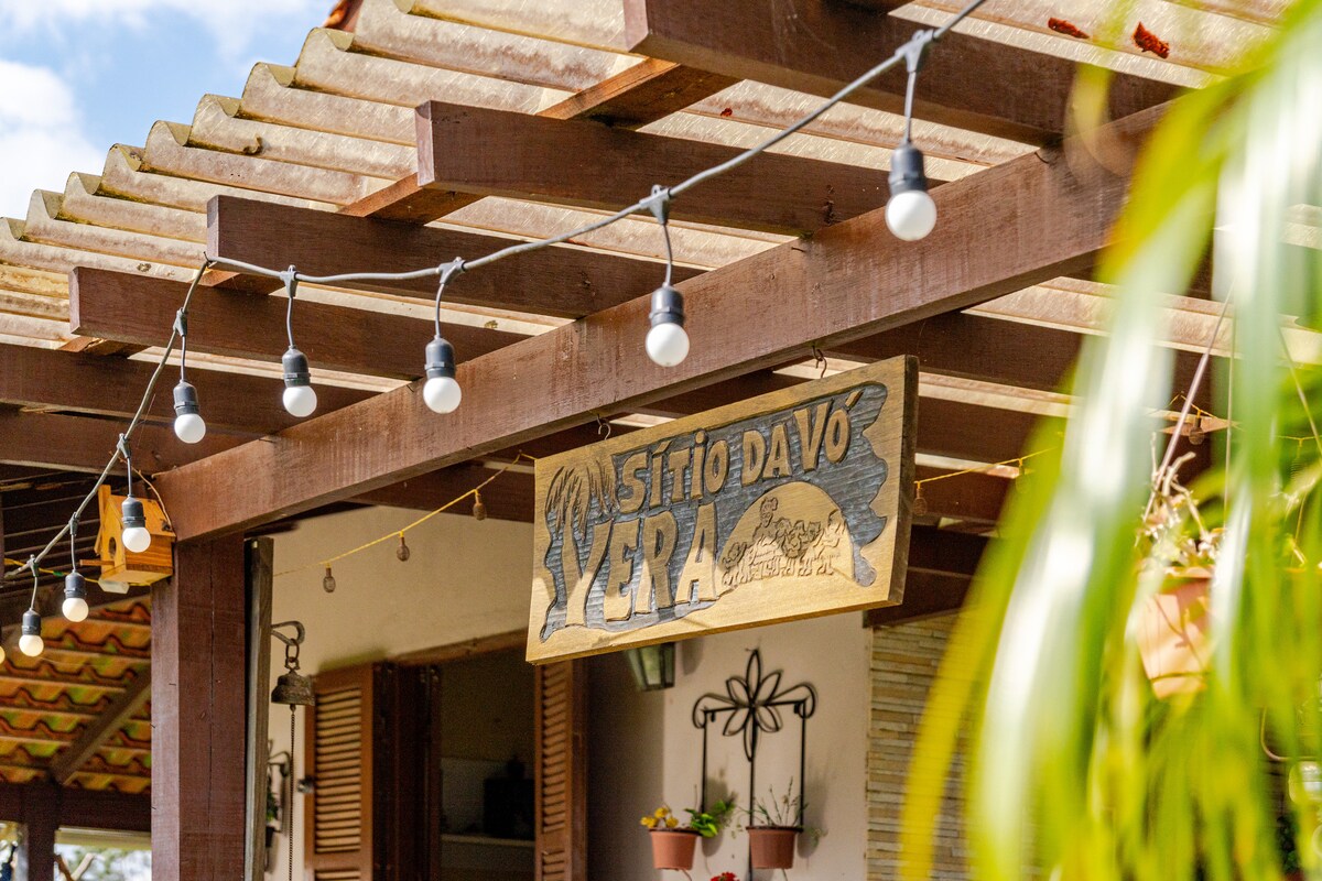 Bienvenido a nuestra cabaña en un lugar encantador, rodeado de mucha vegetación, árboles y canto de pájaros. 🌿☀️ El espacio es totalmente privado, espacioso y acogedor, ideal para parejas o viajeros que buscan descanso y contacto con la naturaleza. La cabaña es casi completamente de vidrio, bañada por la luz del sol todo el día, y tiene una cocina completa, baño completo, aire acondicionado, TV, piscina y terraza con parrilla.