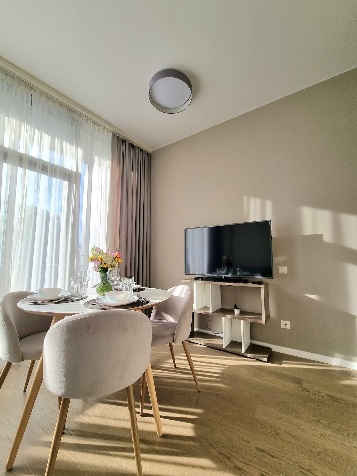 El apartamento se encuentra en el corazón de Druskininkai, en el complejo de arquitectura moderna de «Saules Sonata», y ofrece una estancia cómoda con vistas a la naturaleza, a la avenida de Vilna y a la arquitectura moderna. Cuenta con un balcón amueblado donde podrás disfrutar de tu café con vistas a la naturaleza. El apartamento tiene aire acondicionado, para mantenerte fresco en los calurosos días de verano.
