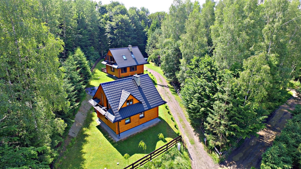 Cómoda casa de campo inaugurada en junio de 2021, ubicada en un lugar encantador y tranquilo, rodeada de un bosque. Hay un gran jardín con dos estanques a disposición privada de los huéspedes. Hay una parrilla/chimenea de jardín disponible. La distancia a los edificios más cercanos es de aprox. 100 m. ¿QUÉ NOS HACE ESPECIALES? Una casa en una parcela grande, un lugar encantador y tranquilo, sin vecinos cercanos, jacuzzi, muebles/equipos de alta calidad. Si no te gusta relajarte entre la multitud, ¡nuestra casa es solo para ti!