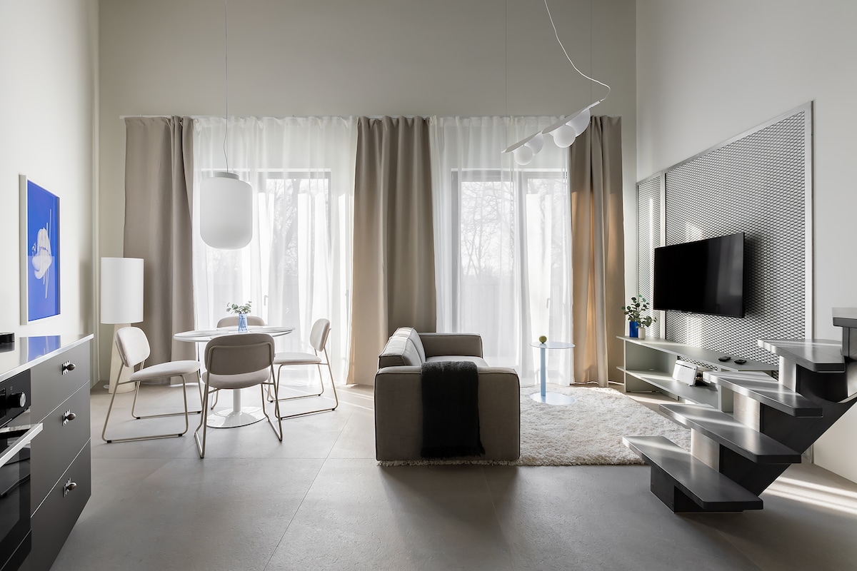 Przestronne i stylowe apartamenty Choya Apartments usytuowane są w centrum Poznania, tylko 5 minut spacerem od głównego dworca kolejowego i Międzynarodowych Targów Poznańskich. Zakwaterowanie w Choya Apartments zapewnia unikalne widoki na panoramę miasta. Modern 9 znajduje się na 9 piętrze budynku, z którego można podziwiać piękne zachody słońca, a one doskonale współgrają z ciepłym i nowoczesnym wystrojem wnętrza.