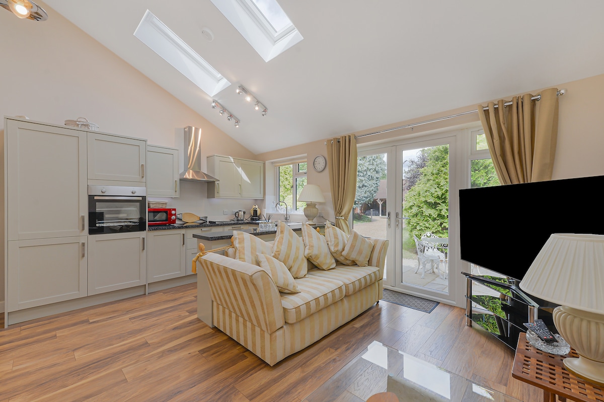 Anexo autónomo de diseño profesional y recién desarrollado, que forma parte de un edificio histórico catalogado de grado II del siglo XVII. Ubicado en el centro de la ciudad de Sevenoaks, en la calle principal, frente a la escuela Sevenoaks y al sitio Knole Park National Trust. Dentro del área de excepcional belleza natural de Kent Downs (AONB). Estacionamiento privado fuera de la calle y jacuzzi (ambos de forma gratuita) y carga de vehículos eléctricos disponibles. Se admiten mascotas.