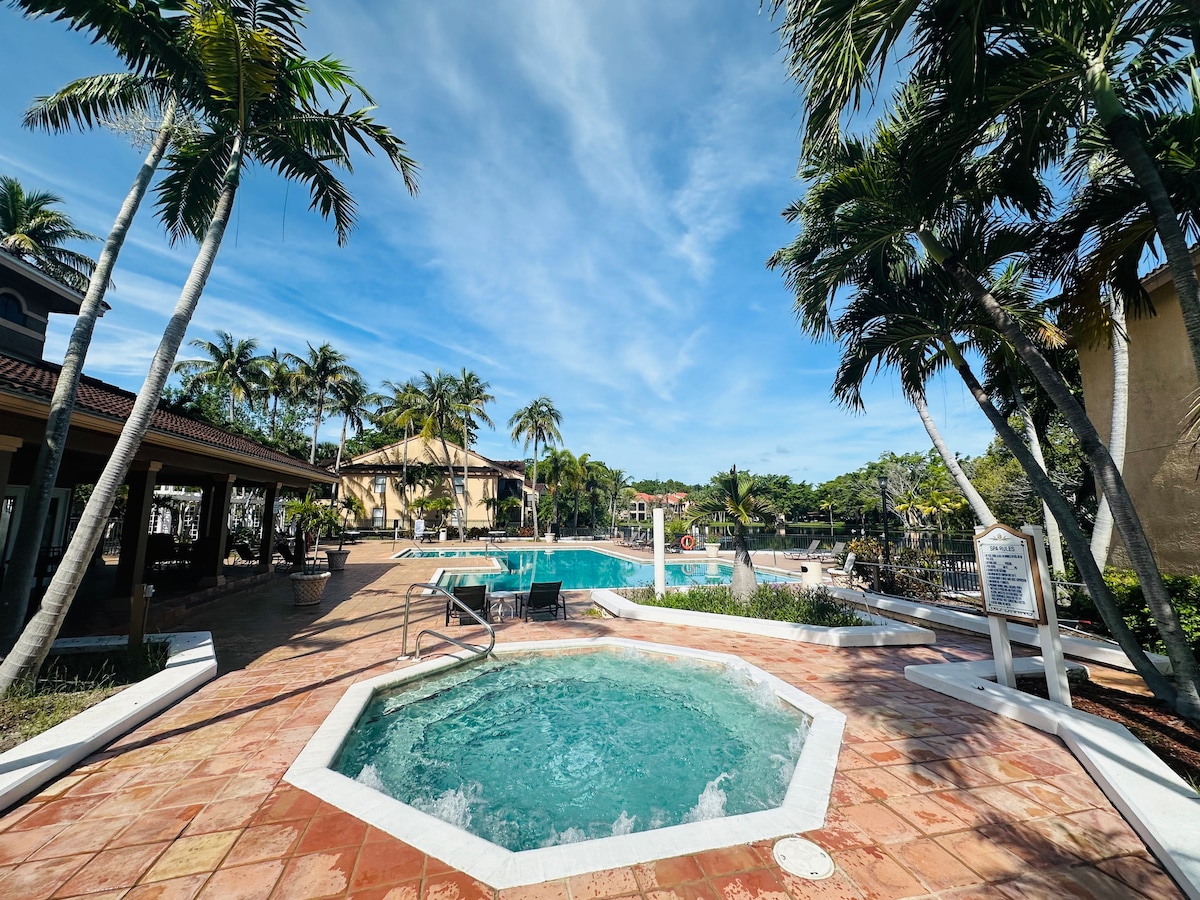 Disfruta del cálido sol del suroeste de Florida y de una casa limpia y moderna con preciosas vistas. Este apartamento recién renovado está a 5 minutos en coche de las playas de Naples y a 15 minutos del centro de la ciudad. Dos dormitorios, dos baños completos, es el lugar tranquilo perfecto para un retiro en pareja o para trabajar de forma remota con internet de alta velocidad. ¡La piscina principal está abierta desde el amanecer hasta el anochecer! ¡Está a dos minutos a pie dentro de la comunidad! (La piscina más pequeña junto al apartamento está cerrada y aún está a la espera de su finalización).