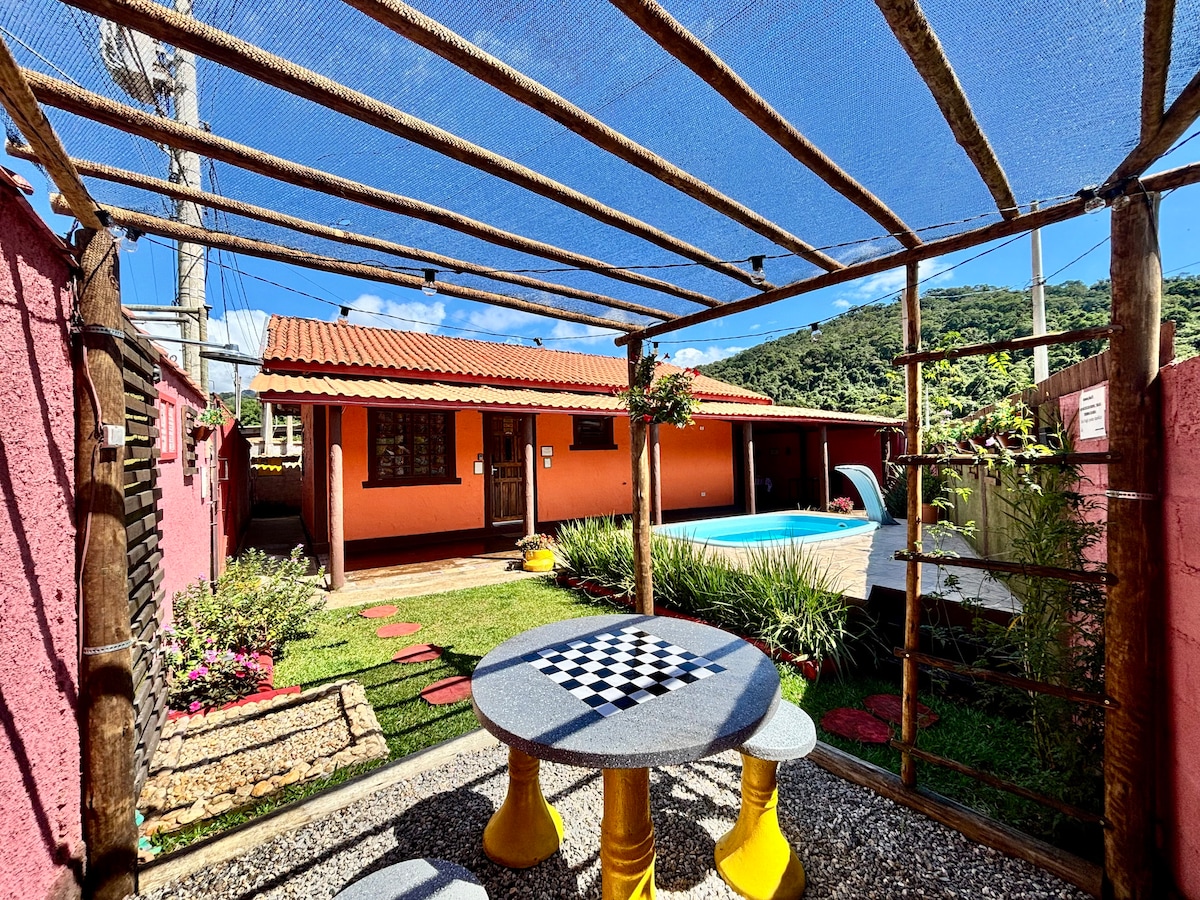 Bienvenido a nuestro encantador chalet en las montañas de Minas Gerais, a 1400 metros sobre el nivel del mar. Con 70 m², es un refugio tranquilo con vistas panorámicas, perfecto para explorar senderos y relajarse junto a la chimenea. Ideal para parejas que buscan romance o familias que buscan una experiencia auténtica en la naturaleza.