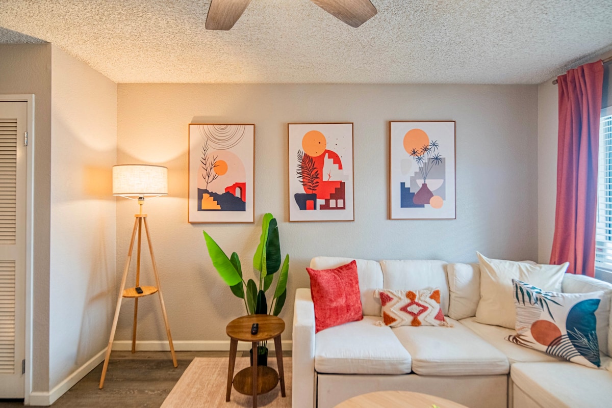 Vídeo: https://vimeo.com/952141151 Nuestro apartamento se encuentra en una hermosa comunidad junto a un lago. El complejo Desert Shores está muy bien cuidado. Caminar alrededor del lago es tan relajante que nos encanta. Nos encanta hacer barbacoas en las parrillas de gas y saltar a la piscina climatizada o al jacuzzi mientras cocinamos. Hay restaurantes maravillosos cerca, como el restaurante de mariscos Pappadeaux y el italiano Anzio's justo al final de la calle. Castles and Coasters es muy divertido. Cerca de la I-17 para un fácil acceso a todo el estado.