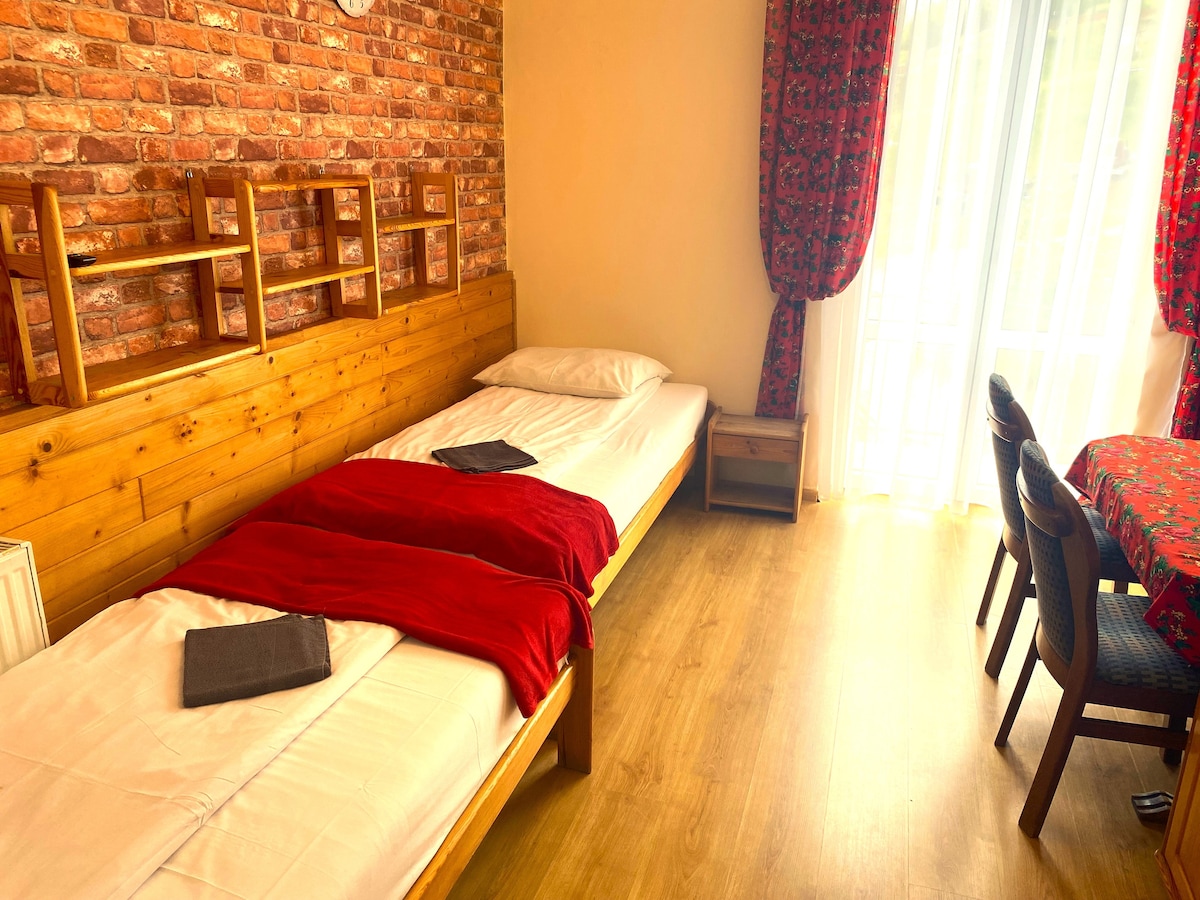 Idealne miejsce dla rodzin – położone w centrum. Lokal ponad 90 m2 dla 10 osób (max 12) 1 sypialnia (łóżko małżeńskie oraz narożnik rozkładany, 2 sypialnia ( łóżko małżeńskie i dwa łóżka pojedyncze), 3 sypialnia dwa łóżka pojedyncze. Łazienka oraz oddzielne WC. Salon z rozkładaną kanapą oraz kuchnia w pełni wyposażona (zmywarka, ciśnieniowy ekspres do kawy) Taras Wi-FI, TV kablowa, + 2 x Smart TV Narciarnia 1 Miejsce parkingowe lub poniżej parking miejski