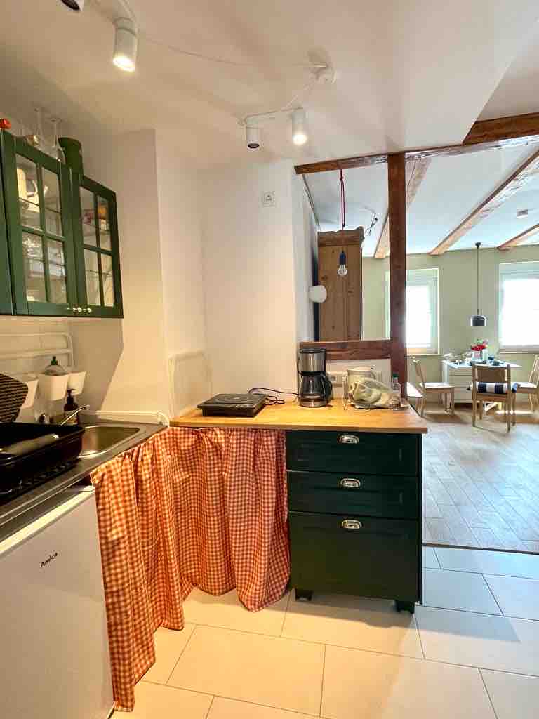 Esta es la traducción al inglés del anuncio en Airbnb: Disfruta de nuestro encantador apartamento totalmente equipado cerca de la A38, que hemos tomado de una casa de huéspedes histórica. Nuestro alojamiento es perfecto para aquellos que buscan paz y relajación o simplemente de paso. Desde aquí, se puede llegar fácilmente a las montañas Harz, a las populares rutas ciclistas o al Alternative Bear Park. Hay un amplio estacionamiento disponible en nuestra propiedad. Está ubicado en el primer piso (sin ascensor).