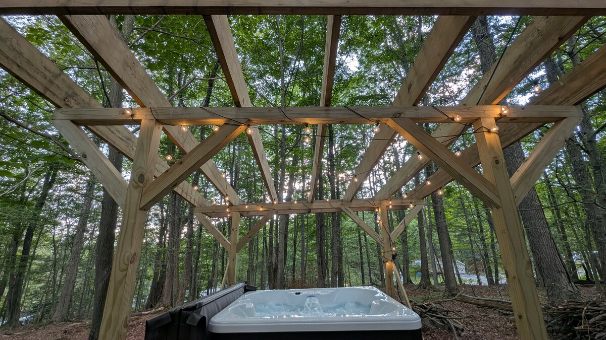 Escápate a una acogedora escapada de otoño cerca de Kalahari, Mount Airy Casino, Crossings Outlets, Lake Wallenpaupack y Tobyhanna State Park a 2 millas de distancia con follaje de otoño y aire de montaña, vistas al lago, vida silvestre y lugares de picnic. Ubicado en una carretera privada escarpada. Este refugio de estilo spa tiene una bañera de inmersión, ducha con efecto de lluvia, luces inteligentes, cocina con estufa inteligente, camas lujosas, espejos LED con sincronización de música y diversión arcade retro. Ideal para parejas, escapadas de cumpleaños o familias que buscan una estancia tranquila en Poconos con comodidades modernas.