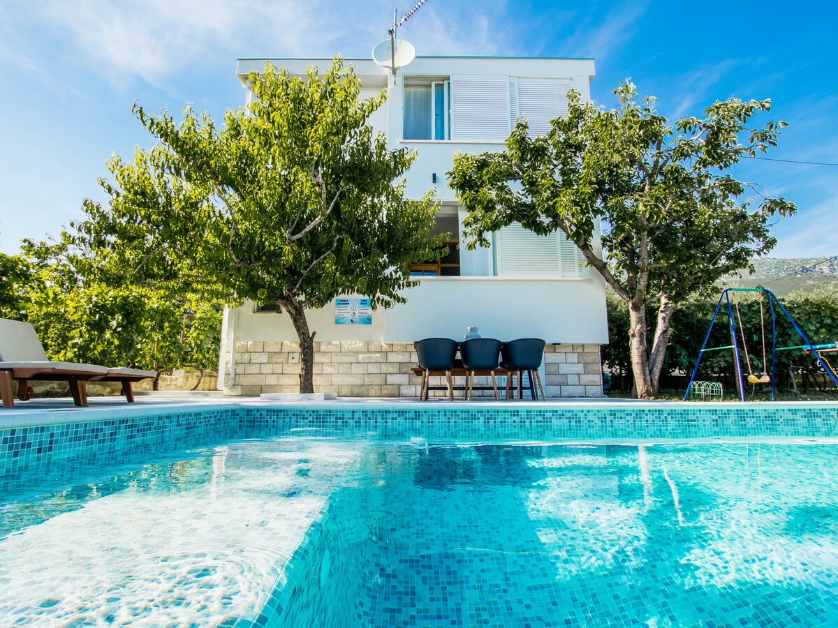 ¡El lugar perfecto para unas vacaciones o una PARADA! El hermoso y espacioso APARTAMENTO MAGDALENA está idealmente ubicado entre las ciudades de Split y Trogir, declaradas Patrimonio de la Humanidad por la UNESCO, a las que se puede llegar en coche/autobús en 15 minutos. Un gran jardín rodeado de exuberante vegetación y piscina privada al aire libre solo para ti y tu familia o amigos. A solo unos minutos en coche del aeropuerto, a pocos minutos a pie de la playa, restaurantes y tiendas. Los anfitriones son amables y viven en la planta baja. Siempre estarán a tu servicio:)