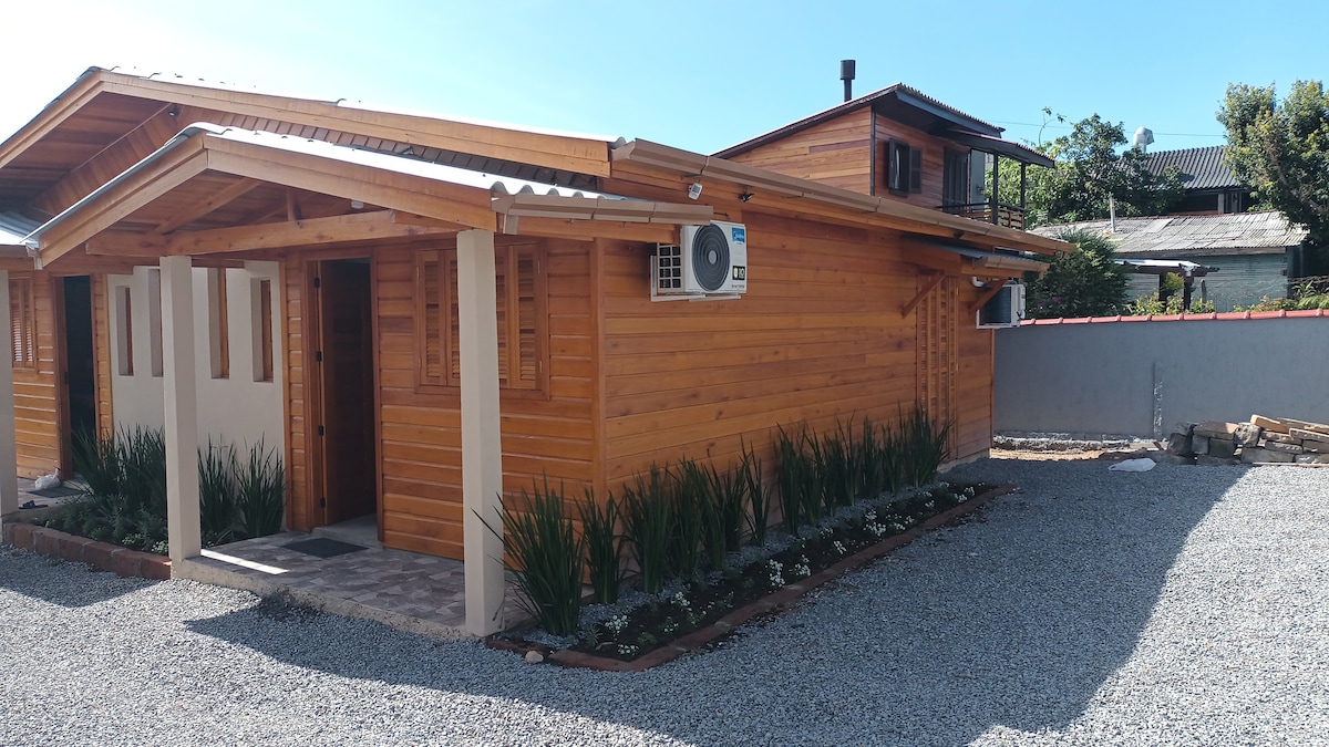 Ven a relajarte en este alojamiento tranquilo y seguro en medio de la naturaleza en la Serra Gaúcha, ubicado en Serra Grande (zona rural de Gramado/RS) a unos 7 km (10 minutos) del centro de la ciudad. Aunque se encuentra en la zona rural de la ciudad de Gramado, el acceso es muy fácil y tiene una carretera pavimentada. La casa tiene capacidad para 4 personas, ya que tiene una cama doble en el dormitorio y un sofá cama en la sala de estar, así como una ducha de gas, microondas, cafetera, minibar, TV inteligente y estufa de leña.