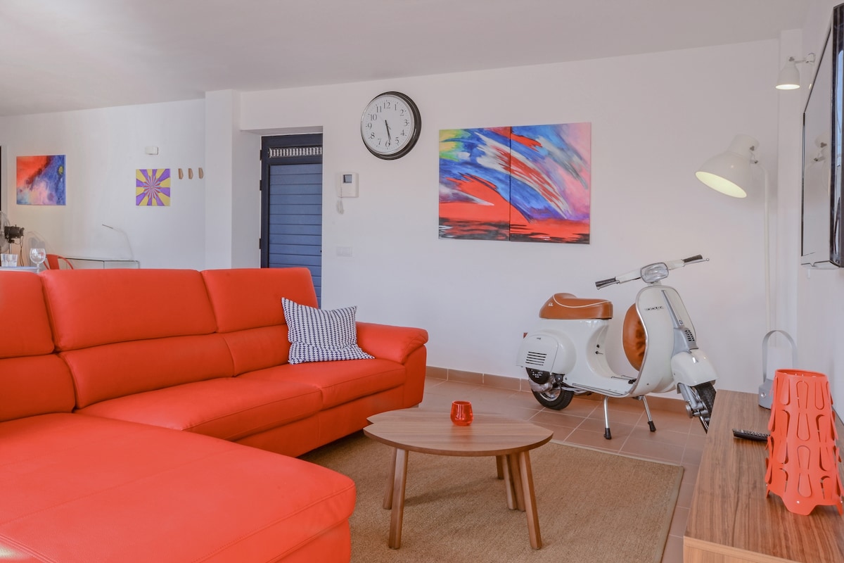 Enjoy your holiday in this magnificent and unique location in a natural park, one bedroom with a big double bed, in the living room one sofa bed, fully equiped kitchen, refrigerator, microvawe, toaster, coffee maker, washing maschine, living area with flat screen TV, balcony with the spectacular sea view to have breakfast or dinner by candle light. Swimming pool with sunbeds and showers to relax.