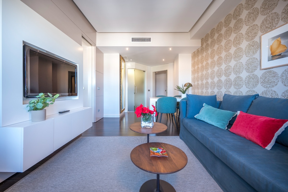El apartamento Deluxe es una estancia amplia, confortable y tranquila de 81 metros cuadrados, con aire acondicionado, con orientación exterior hacia dos calles tranquilas que hacen esquina. El apartamento está decorado en estilo moderno.