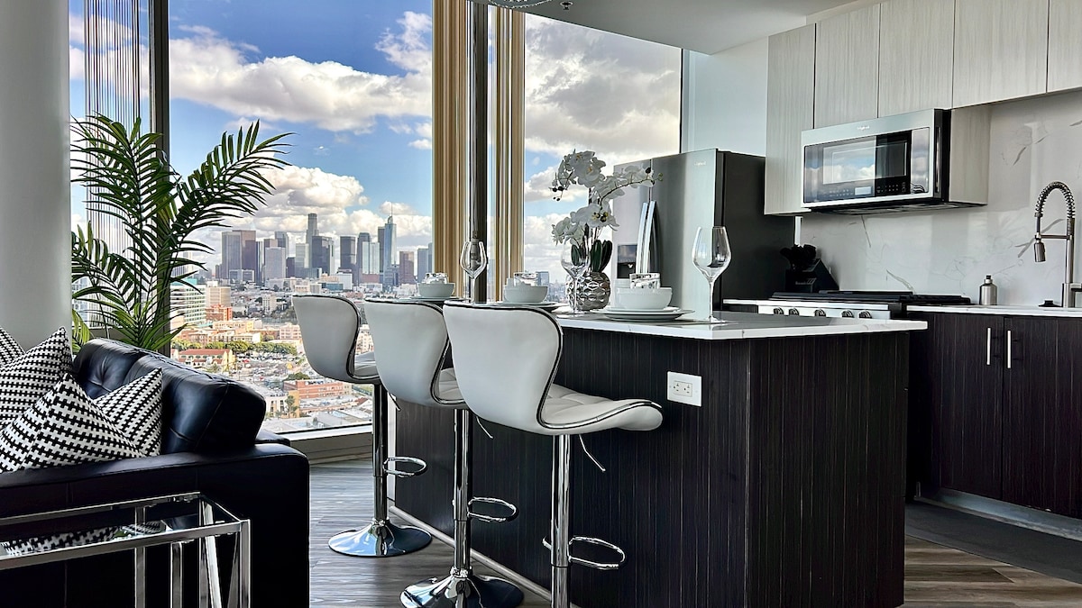 Disfruta del centro de Los Ángeles desde lo alto de su horizonte. Ya sea que estés en la ciudad para una convención, espectáculo, evento deportivo o fin de semana, te encantarán los lujosos servicios y las increíbles vistas que ofrece este alojamiento. Con unas vistas absolutamente impresionantes del centro de la ciudad, observa el caos organizado desde lo alto en nuestro tranquilo apartamento.