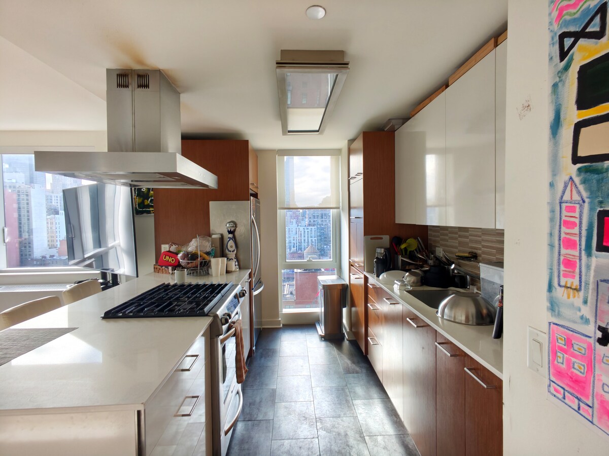 Disfruta Nueva York desde arriba con lujo. - Dirección: 450 W 42ND STREET, NY,NY 10036. Nombre del edificio MiMa. - Este moderno 2BR/2BA cuenta con ventanas del piso al techo con vistas icónicas del horizonte, arte de alta gama. - Disfruta de la cocina de un chef con una isla de cuarzo, lavandería en la unidad y un televisor giratorio masivo. - Situado en Hell 's Kitchen, cerca de los mejores restaurantes y teatros. Las características del edificio incluyen un conserje las 24 horas y servicios de clase mundial (gimnasio, piscina, canchas) por una tarifa adicional.