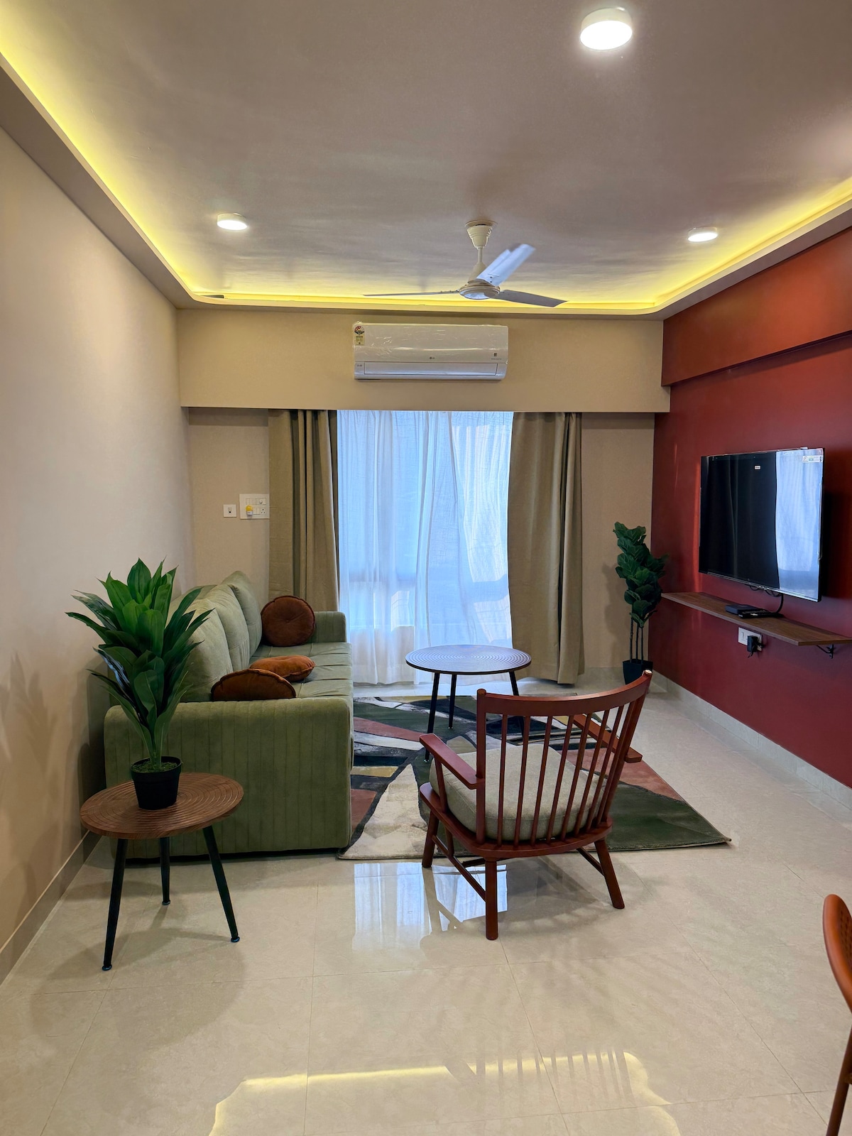 Un 2BHK en Santacruz que en realidad está construido para la comodidad, el trabajo y el entretenimiento. 760 pies cuadrados de espacio elegantemente diseñado con un televisor 4K de 55 pulgadas (YouTube Premium + JioHotstar + Zee5 + SonyLiv), además de televisores Google en ambas habitaciones. Escritorios de trabajo dedicados en cada habitación. Router Wi-Fi central para señales fuertes en todas partes. Diseño inteligente para dormir: 1 cama tamaño queen + 2 camas individuales flexibles (ideales para colegas, amigos o niños) + sofá cama para 2. Si valoras el espacio, la transmisión y la conectividad seria, este es el indicado.