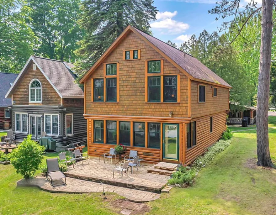 Casa de campo de 2 pisos: CAPACIDAD para 12 personas (1200 pies cuadrados) de 3 dormitorios. Cabaña n .º5 recientemente actualizada en el lago Spider con cocina actualizada: 1 cama queen con la parte superior acolchada en el piso principal, 2 camas queen en el dormitorio #2, roll-a-ways, 2 camas dobles en el dormitorio #3 en la planta superior, aire acondicionado de ventana en la sala de estar y ambos dormitorios de arriba, 1 baño con ducha nueva, 1/2 baño en la planta superior, lavadora/secadora, parrilla de gas, fantásticas vistas al lago. Frente al lago COMPARTIDO, chimenea y terraza para tomar el sol. Consulta el calendario para conocer los precios actualizados y los especiales fuera de temporada.