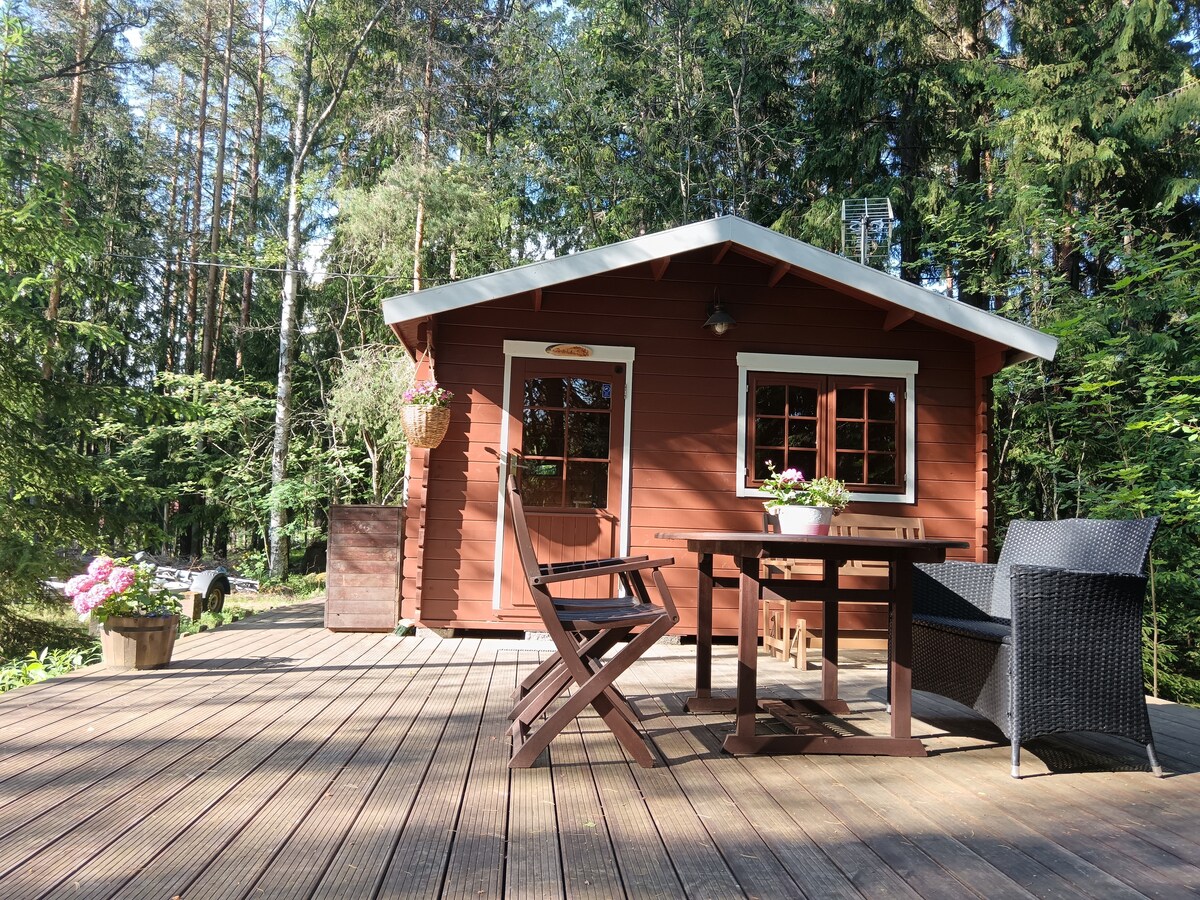 Relájese con toda la familia en este tranquilo alojamiento. Cabaña a orillas del mar, a una hora de Helsinki. La cabaña es más adecuada para 4 personas, aunque tiene capacidad para 5. La cabaña tiene cocina, dormitorio, altillo, aseo/baño con lavadora. Cocina bien equipada. El patio tiene una sauna de madera, ducha y aseo. Playa y muelle privados. Parcela de 1 hectárea. La familia anfitriona vive en el mismo patio, a 50 m de la cabaña. Un lugar tranquilo para trabajar a distancia. Naturaleza y paz cerca. ¡Bienvenido!