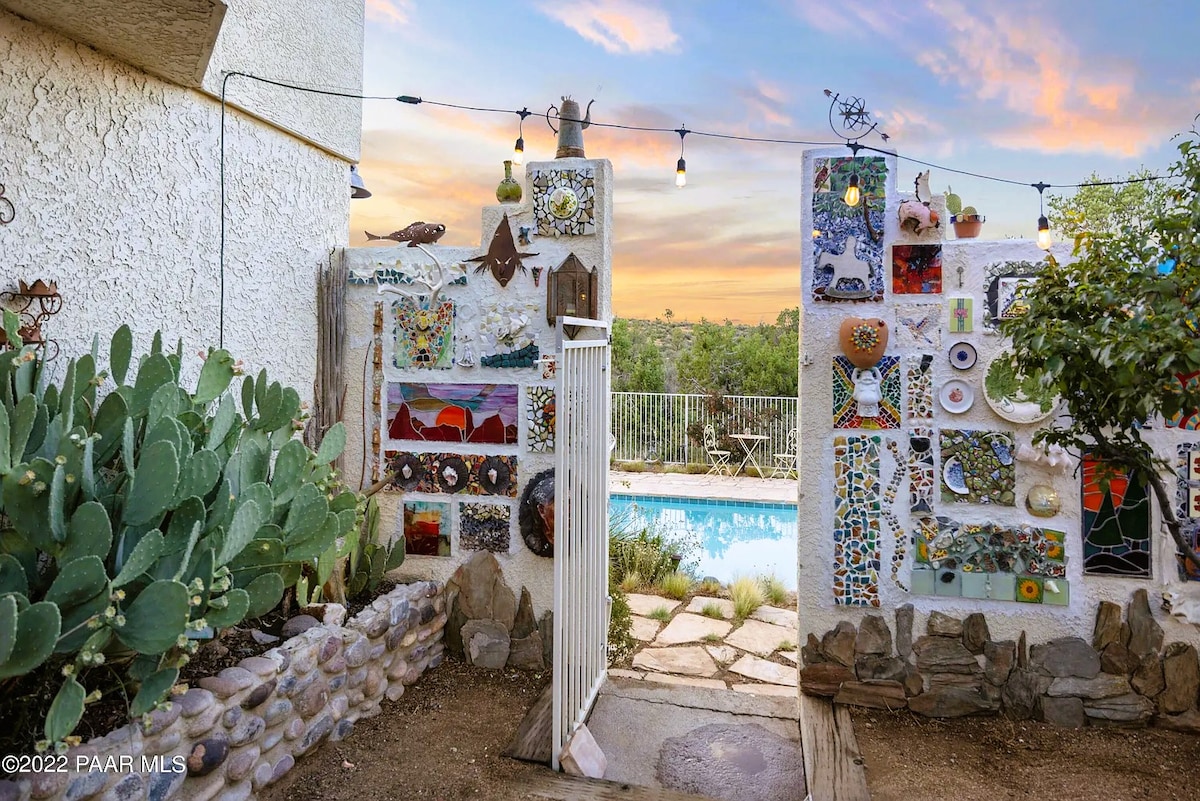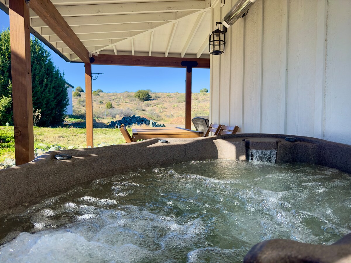 “Butte Hideaway • Vistas panorámicas, jacuzzi, cerca de Rodeo y senderos” Te encantará este refugio único y tranquilo, escondido en la montaña, pero a solo 1 milla de la plaza del palacio de justicia de Prescott, con restaurantes y tiendas. A solo 0,4 millas del recinto ferial, hogar del “Rodeo más antiguo del mundo”. Disfruta de las impresionantes vistas de Thumb Butte desde el porche o mientras te relajas en el jacuzzi. El Butte Hideaway está perfectamente ubicado para hacer senderismo, ciclismo o kayak en los numerosos senderos panorámicos y lagos cercanos.