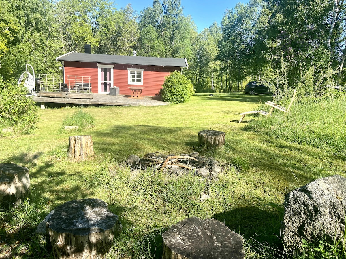 Casa rural idílica, 30 metros cuadrados, en una playa privada, agua de lago muy clara, cerca de la autopista E4 y Gränna. A treinta minutos de Jönköping. Un dormitorio con una cama de lujo para dos y una habitación con un sofá cama plegable muy cómodo para dos y una zona de cocina. Sauna de leña, baño con ducha, lavabo e inodoro. El anfitrión vive en una casa a unos 50 metros de la playa. La cocina es para cocinar de forma sencilla, no se permite el uso de una sartén, pero hay una barbacoa de carbón disponible.