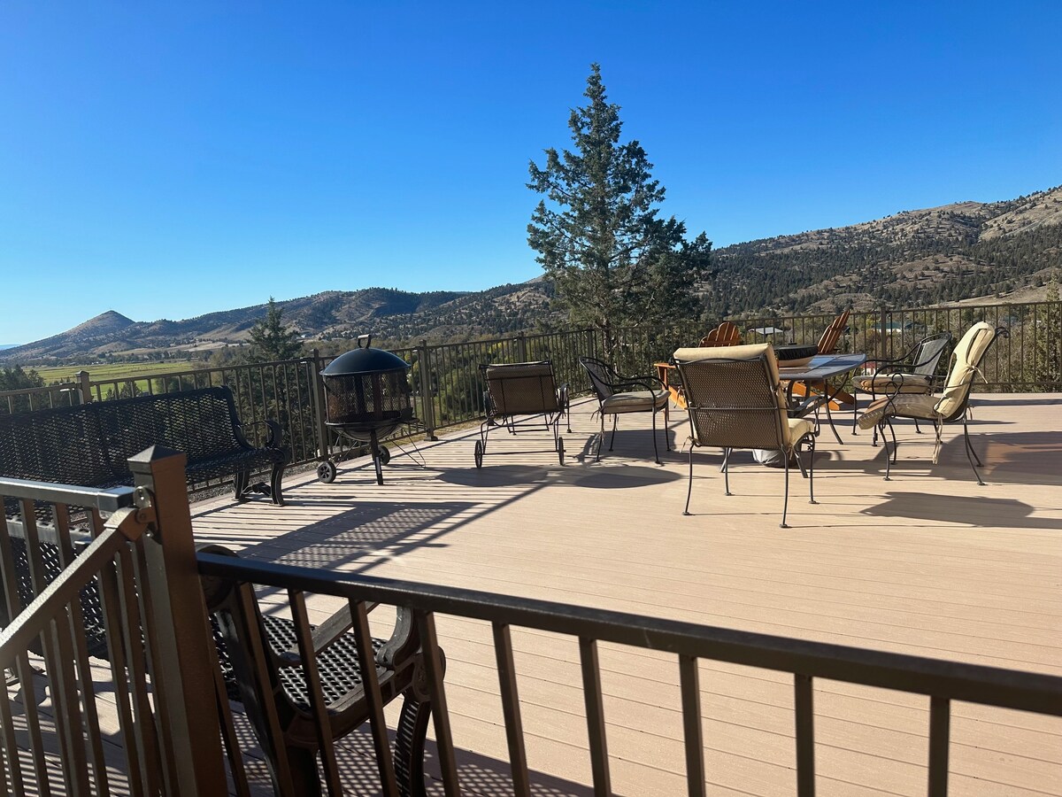El chalet está a 1000 pies sobre el valle y la ciudad de John Day, Oregón. Gran vista de la ciudad y el valle al este y Canyon Mt. al sur. Completamente equipado y listo para que te mudes y disfrutes. Es una decoración clásica de alto desierto completa con herraduras y ciervos que aparecen de visita. Gracias por el aviso. Y para tu información y conocimiento, Todas las sábanas y toallas, etc. se cambian después de cada alquiler y todas las superficies y grifos, pomos y manijas también se esterilizan.