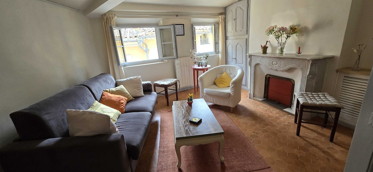 **SIN AIRE ACONDICIONADO** Apartamento en el corazón del casco antiguo de Grasse, idealmente situado cerca de perfumerías, galerías de arte, restaurantes, bares y tiendas. Disfrute de una habitación convertida en una sala de cine con equipo de imagen y su alta gama, así como ropa de cama de hotel (cama de matrimonio). Perfecto para relajarse después de un día de descubrimientos. Comodidad, encanto y entretenimiento garantizados en este lugar único. Acceso a +100 Blu-rays, Netflix y Disney+ 4K. ¡Haga sus palomitas de maíz!