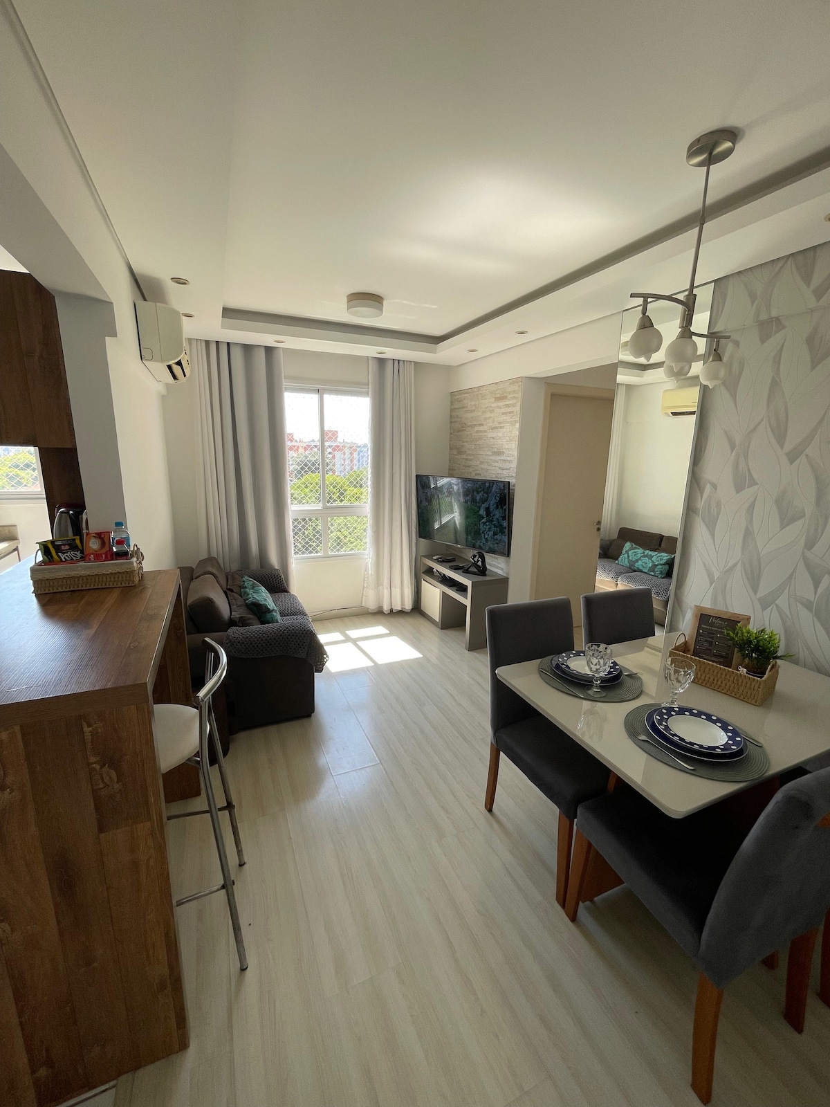 Lleva a toda la familia a este gran lugar con mucho espacio para divertirse. São 2 dormitorios con dos camas dobles y dos aire acondicionado más un sofá cama gigante. Comedor y gran balcón con barbacoa . Espacio de garaje. Ubicación privilegiada. Cerca del aeropuerto y Fiergs . Y también la arena de Grêmio . Condominio cerrado y seguro con condominio las 24 horas de acceso rápido y fácil a la costa de Río Grande do Sul y Santa Catarina . Supermercado junto al condominio.