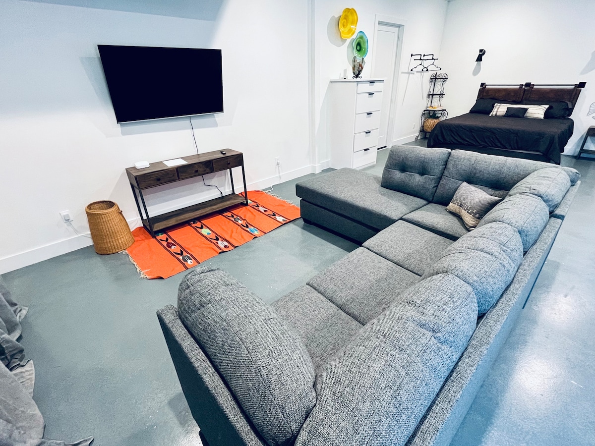 Desconecta de la rutina en este alojamiento único y relajante. Cómoda cama tamaño king en apartamento estilo estudio con cocina completa y ducha a ras de suelo de gran tamaño. Acceso rápido a las principales carreteras. Convenientemente ubicado entre Sherman y McKinney, Texas. Perfecto para familias de fuera de la ciudad que asisten a bodas y reuniones navideñas.