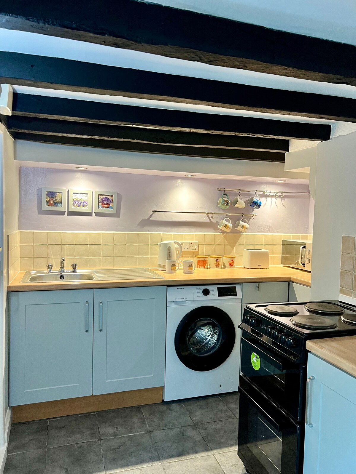 No77 High Street is a pretty, grade II listed cottage ideally placed to walk to all attractions within historic Lavenham. A few doors down from a Coop - well stocked with provisions for your stay. Recently completely refurbished, all furnishings are new, including new beds with SIMBA mattresses, top quality bed linen and towels. To the rear is a terrace - a sheltered spot for breakfast al-fresco. It has a lockable rear entrance for secure cycle and pushchair storage. Car park 100m away.