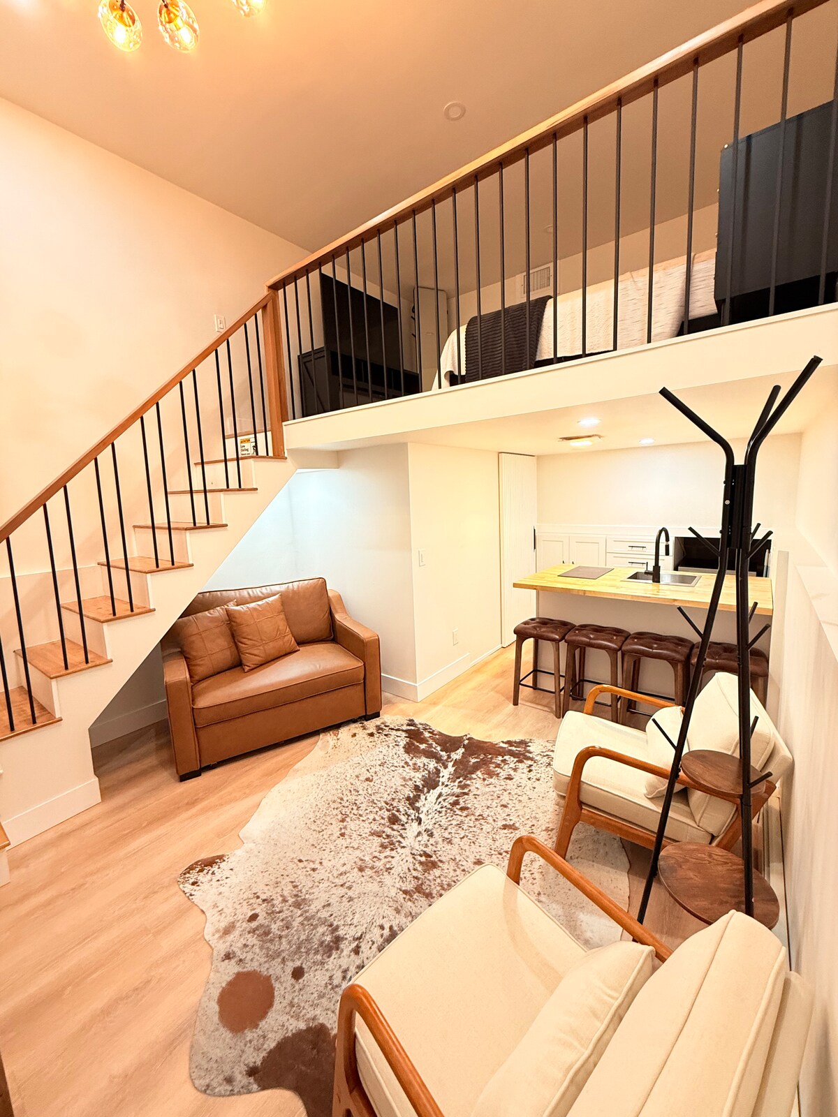 Entra en nuestro departamento de garaje bellamente transformado. Un espacio moderno y acogedor perfecto para viajeros solitarios, parejas o huéspedes de negocios. El loft cuenta con un interior elegante, un cómodo loft para dormir, una cocina completa y un baño elegante, lo que lo convierte en un hogar relajante lejos de casa. Ubicado en un barrio tranquilo con fácil acceso a tiendas locales, restaurantes y carreteras principales, ofrece la combinación ideal de comodidad y conveniencia.