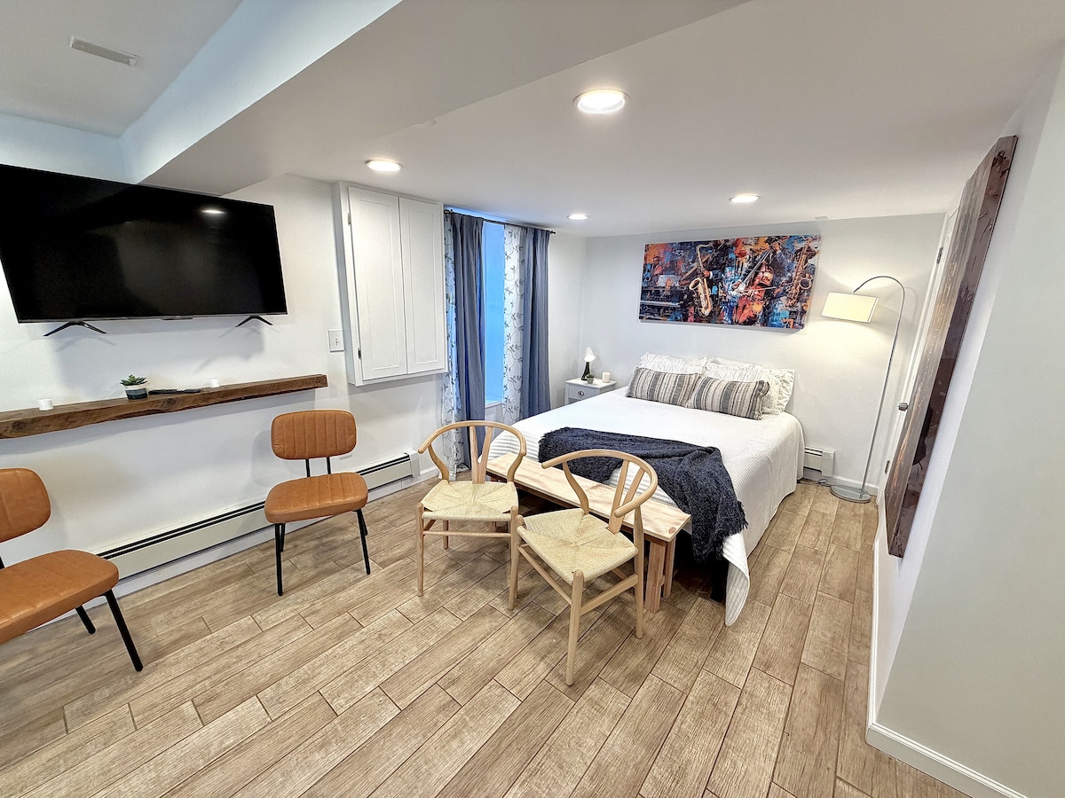 ¡Ten en cuenta la ubicación y el área antes de reservar! (NO RESERVES si no sabes que es ruidoso y ocupado) Convenientemente ubicado en el centro de la ciudad de Bridgeport. No dudes en encender un fuego🔥. Las ventanas únicas teñidas a mano proporcionan al espacio una sensación abierta, aunque es un espacio pequeño. La cama tamaño queen, la chimenea y la estética distinguen este apartamento de cualquier alquiler que puedas encontrar. * Tarifa por mascotas para mascotas. Por favor, ponte en contacto conmigo con antelación.